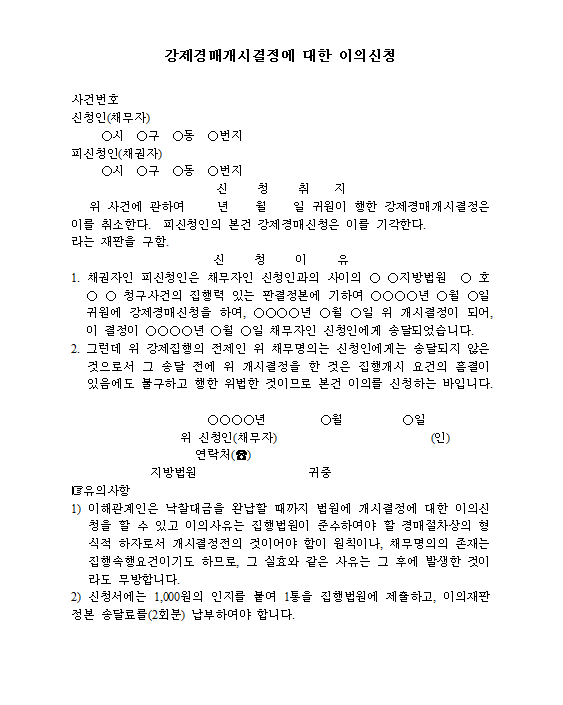 강제경매개시결정에 대한 이의신청