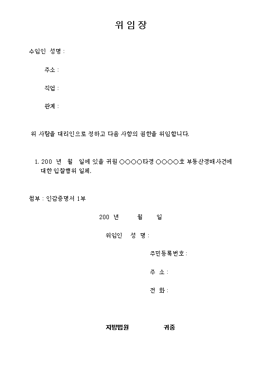 기일입찰표 및 위임장