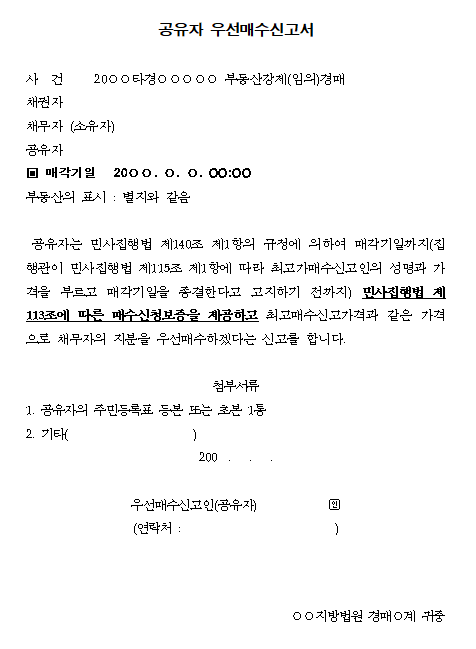 공유자의 지분우선 매수신청서