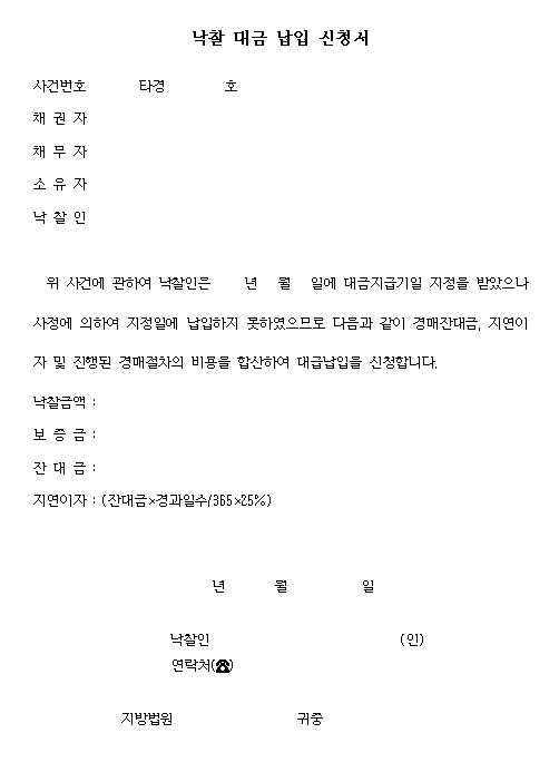 낙찰대금납입신청서