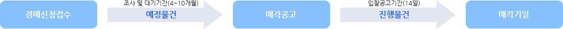 예정물건이란? 경매를 신청/접수하면 매각공고 전까지 법원에서 물건을 매각하기 위해 현황조사 및 감정평가, 물건매각을 위한 이해관계인 배당요구종기일을 정해 약 4~10개월 정도의 준비기간이 필요합니다. 그 준비가간 동안 물건정보를 미리 습득하여 경매(매각)가 되기 전에 경쟁없이 취득할 수 있는 정점을 가지고 있습니다. 예정물건은 이로인해 감정평가서, 등기부등본, 상세내역 등이 없습니다.